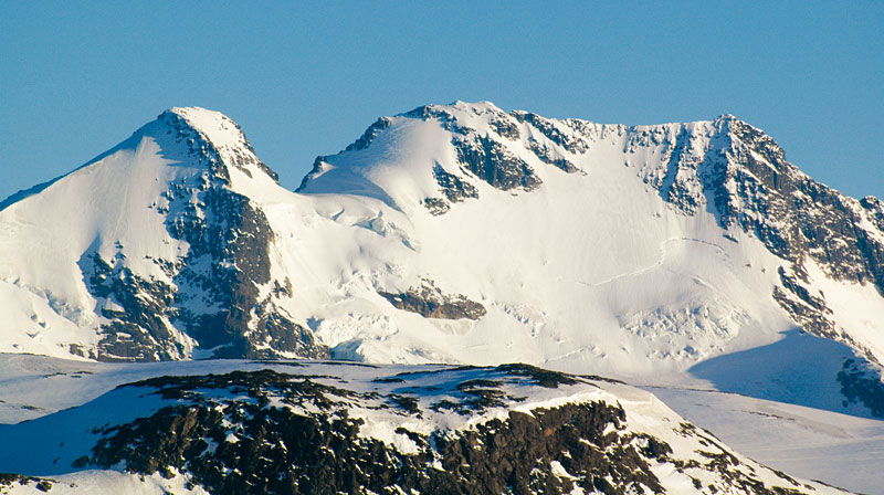 Styggedalstind, 2387m, is the fourth highest mountain in Scandinavia. It dominates the eastern half of the famous view of Hurrungane as seen from Sognefjellshytta lodge and on so many calendars. It comprises two tops, the higher eastern and slightly lower western top which are connected by a horizontal but jagged arête.