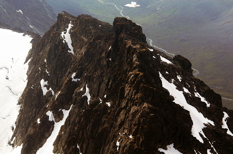It is usually climbed in conjunction with an ascent of Sentraltind via Maradals ridge and a description of that is given above in the alternative route section.