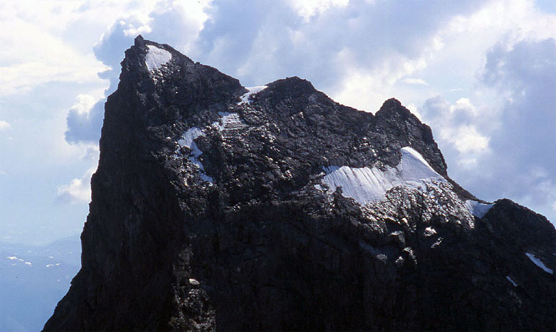 The south ridge is more demanding and exposed and the climbing is grade III, with long sections of grade II, and this is described here. There is a classic traverse of the whole massive taking in the south and west ridge. This traverse is probably best done by ascending the south ridge and descending the west ridge. Ideally the traverse is best done in August when it should take 11-13 hours.