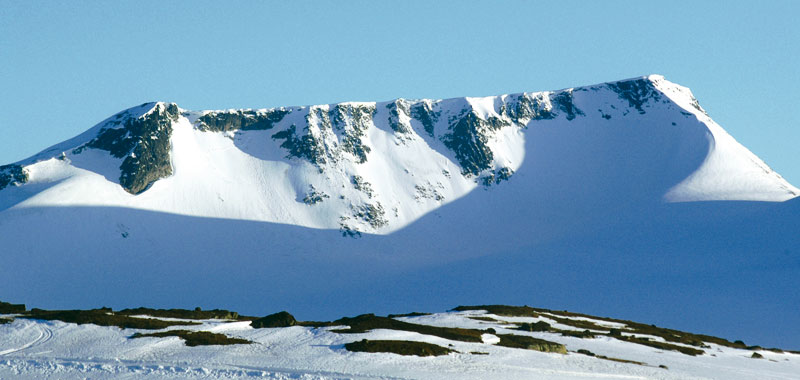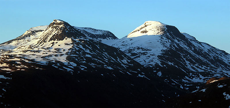 Just to the east of the weather station hut is a flatter area above the cliffs and glacier where there is a marvellous view over the Fanaråkbreen glacier to the Smørstabb massif and the rest of Jotunheimen beyond. Fanaråken also gives a unsurpassed view to the huge north face of the connected Styggedals and Skagastøls ridges to the south.