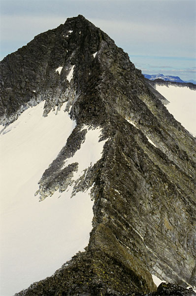 There are 3 other routes all of which cross crevassed glaciers and involve a degree of scrambling and a route which crosses glaciers and involves some climbing to grade IV. These 3 routes are also described on the Stølnostind page. Due to avalanche considerations none of the alternative routes, or indeed the main route described below, are suitable as winter ascents.