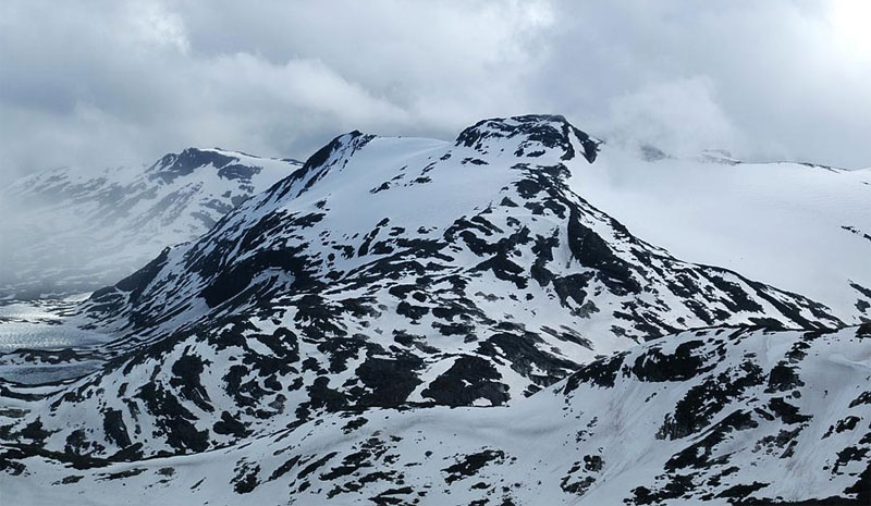 Mjølkedalspiggen, 2040m, lies to the north east of the Uranos massif and is one of the more remote mountains in Jotunheimen. On its south side is Mjølkedalsbreen glacier, a large and heavily crevassed glacier which has carved a deep ice filled valley. On the north side is the reasonably isolated Skogadalen valley. It is from this valley that the easiest routes to the summit start.