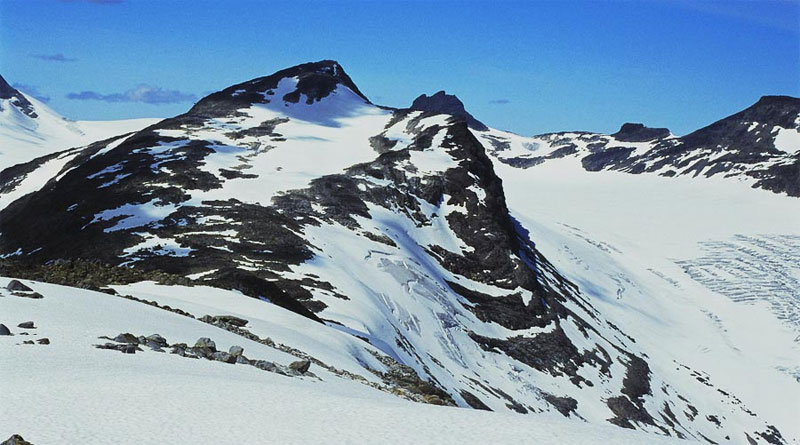 There is also a sobering view down onto the subtle, but deep, crevasses in the glaciers on each side, namely, Uranosbreen and Mjølkedalsbreen, which should be enough to discourage un-roped glacier travel! The return is by the same route or one of the alternatives mentioned above.