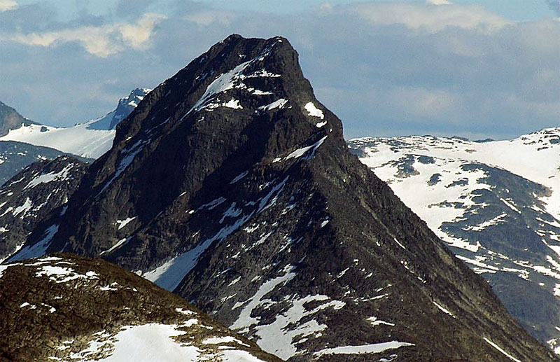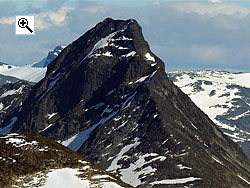 This is the route I have describedin the main section from Olavsbu cabin. The alternatives I have described here and on the Midtre Rauddalseggi page are up the steep arêtes on the west and east end of the main Rauddalseggi ridge.