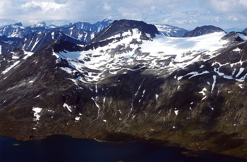 Langvasshøi, 2030m, lies to the south of Visbretind, where it a large broad peak on the south ridge of Visbretind. If Visbretind is climbed via the preferred main route or the alternative route from Langvatnet then Langvasshøi must be passed en route to the summit. The top of Langvasshøi is composed of very hard and rough iron-rich rock which creates havoc with the compass needle.