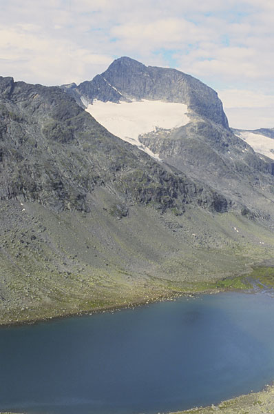 The east ridge from Svartdalen is something of a classic. Getting to it is a bit untidy. From either Torfinnsbu or Gjendebu lodges head up path Sl.2 to the flat stony area between the largest two lakes. Leave the path here and head south west up towards a ridge of moraine.