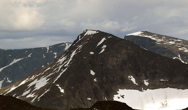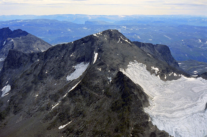 The south west ridge is a variation of the main route and follows it from Torfinnsbu lodge all the way up to the edge of the glacier just to the west of Torfinnsegge. Ascend the snout of the glacier for a short distance and then veer to the west climbing up the steeper snow and ice slopes to gain the broad ridge and rounded top of Kvitskardoksle, 2065m.
