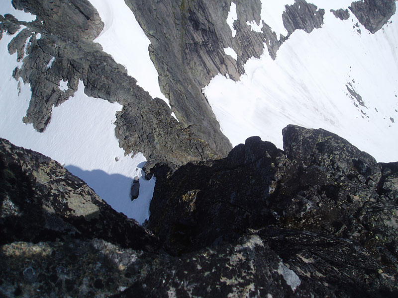 If descending this way 2 ropes are necessary to abseil down these crags. The total time of the climb from the saddle is 3 hours but it probably takes another 3 hours to reach the saddle from Gjendebu, Torfinnsbu or Fondsbu lodges.