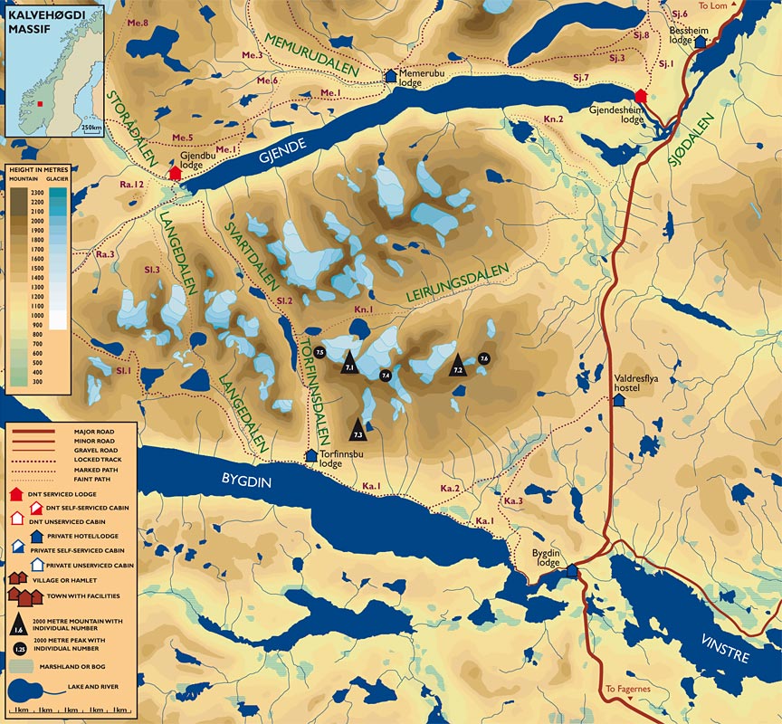 Click the mountains, peaks, walking routes and accommodation on the map below for further information.