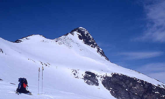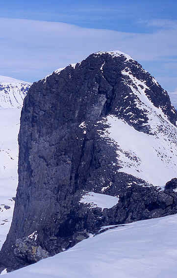 From the saddle, where there is a wonderful view of the Gladhøpiggen Massif, there is a moderate ascent of 250m for 1 km to the south top, which will present no problems at all.